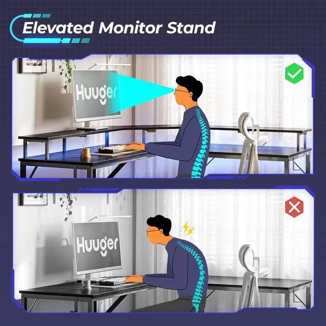 Monitor Stand & Headphone Hook: Apart from adding more storage space, this computer desk with monitor stand elevates your monitor, reducing the strain on your neck and spine. And more, 2 hooks keep headphone within arms reach