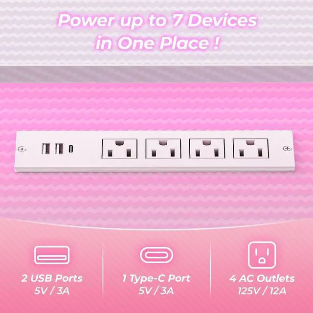 Power Within the Reach: With 4 standard plug outlets, 2 USB ports and 1 Type-C port on the gaming pc desk's desktop, you can easily power up your devices via mutiple charging options. Functional and organized
