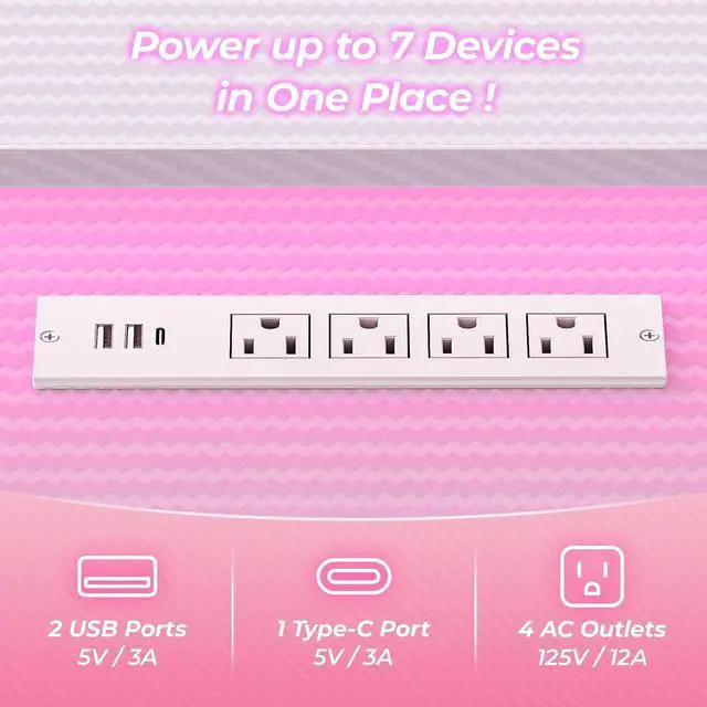 Power Within the Reach: With 4 standard plug outlets, 2 USB ports and 1 Type-C port on the gaming pc desk's desktop, you can easily power up your devices via mutiple charging options. Functional and organized