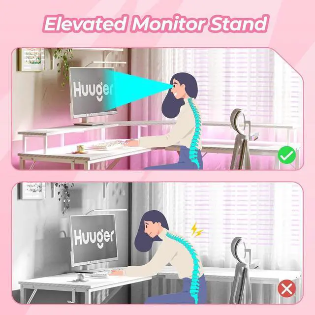 Monitor Stand & Headphone Hook: Apart from adding more storage space, this computer desk with monitor stand elevates your monitor, reducing the strain on your neck and spine. And more, 2 hooks keep headphone within arms reach