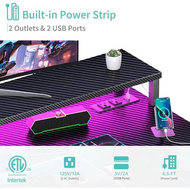 Safety Multi-functional Power Strip: The computer desk includes a built-in power strip with 2 power outlets & 2 USB charging ports for your computer, monitor, gaming gear, pad, phone and other electronic devices