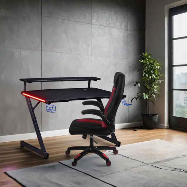 Integrated multicolor LED lighting wraps the desk in customizable ambiance, giving you complete control of your environment through an included remote. Whether youre streaming, competing, or working late, the lighting sets the tone for focus and immersion. The built-in USB port adds convenience for device charging or data transfer without cluttering your workspace.