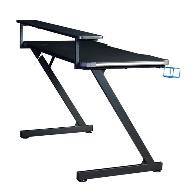 The AON Desk features a sleek carbon-fiber-textured surface that resists scratches and fingerprints, supported by a reinforced 16-gauge steel Z-frame for maximum stability during high-intensity gameplay or heavy workloads. The dual-tier design includes a full-length riser shelf that elevates your monitor to an ergonomic viewing height, helping reduce neck and eye strain while freeing valuable desktop space for your keyboard, mouse, and accessories.