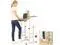ADJUSTABLE HEIGHT: Adjustable-height standing desk with 2 work surfaces; Material: Steel; Color: White/Brown; Dimensions (L x W x H): 21.2 x 21.2 x 45.3 inches; Weight: 25.4 pounds