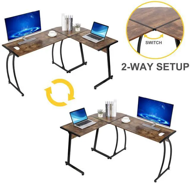 Easy to Assemble -- Never have an anxiety attack imagining building a desk again. All accessories, detailed instruction manual and wrench are included. Even the old could do it easy. This simple and modern designed l shaped desk can be installed with the longer board placed on either side to fit different work habit (reversible).
