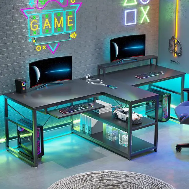 What can you get? 2 person desk + printer stand with storage + 94.5" LED light + power strip with USB interface + keyboard tray + monitor stand. This multifunctional two person desk is convenient for 2 people to use at the same time, and can communicate at close range without disturbing each other. Perfect as computer desk, 2 person desk, home office desk, gaming desk, office desk.