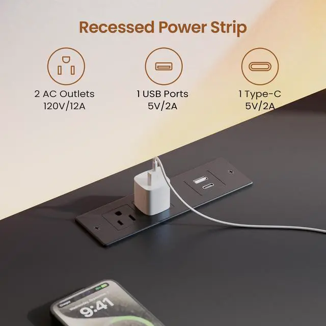 MultifunctionalEquipped with 2 AC outlets and 2 PowerIQ-enabled USB charging ports to provide power for up to 4 devices simultaneously. The keyboard tray is ideal for 108-key or 87-key keyboard + mouse, which can free up more desktop space. The monitor stand can easily raise 2 monitors to a suitable height, reducing the tension and pain of the back and neck.