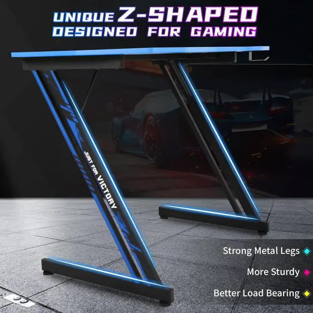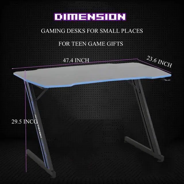 Stability: The overall frame of the gaming computer desk is embodied in a z-shaped, novel structure, firm and stable. The 47 inch gaming desk have adjustable feet specially designed for the metal frame, even in uneven ground and carpet can have good balance. The z-shape gaming table will not rub damage to the ground your house.