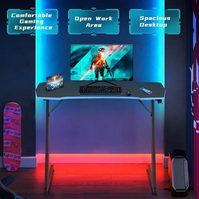 Effective Use: This pc gaming desk workstation's wide desktop has plenty of room for computers, gaming keyboards, gaming monitors and other gaming gear. the 47 in black gaming tables is equipped with headset hooks to provide a storage location for gaming gear or other small items.