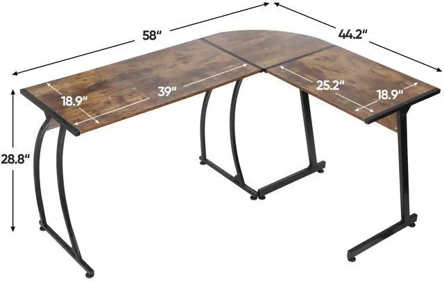 Large Home Office Workstation: Curved corner desk,provide large space for your office supplies.39 x 18.9 and 25.2''x 18.9'',double desk workspace provide you plenty of surface space for your monitors,laptop,PC,and writing,computer work and other home office activities.You can take full advantage of space to define your workspace