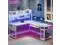 SEDETA White L Shaped Gaming Desk, Reversible Corner With Power Outlet and Pegboard, Hutch, Storage Shelf, Keyboard Tray, and LED Lights for Home Office