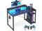 MOTPK 40 Inch Small Gaming Desk with Storage & Led Lights, Computer Desk with Shelf, Reversible Gamer Desk with Monitor Stand, Carbon Fiber Texture Black