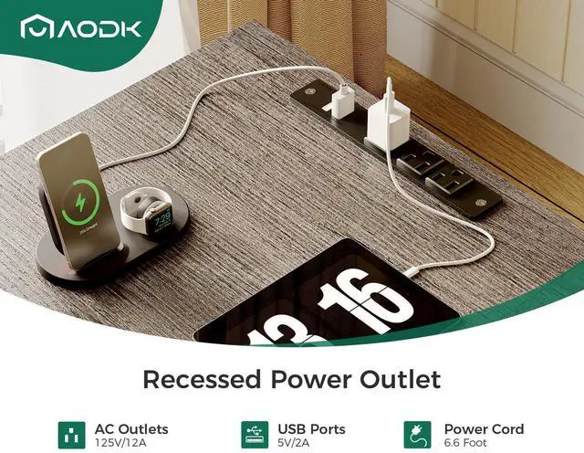 Power Outlet & LED LightCome with a built-in power outlet, this l-shaped computer desk provides 3 AC outlets and 2 USB ports, now you can charge multiple devices easily and safely. Upgraded LED light strip features with odorless milky fluorescent shell, provides better light diffusion and creates cool gaming atmosphere.