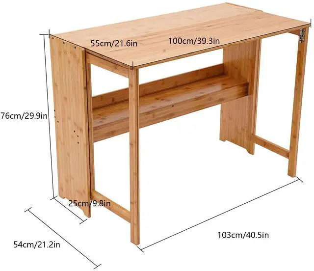 Bamboo Computer Desk: The foldable desk is made of high-quality bamboo and hardware, which is made of spray-painting process, sturdy and durable. The thick bamboo panels and sturdy construction can hold up to approximately 110lbs, allowing you to safely hold a variety of items such as lamps, laptops, potted plants, materials, stationery and more.