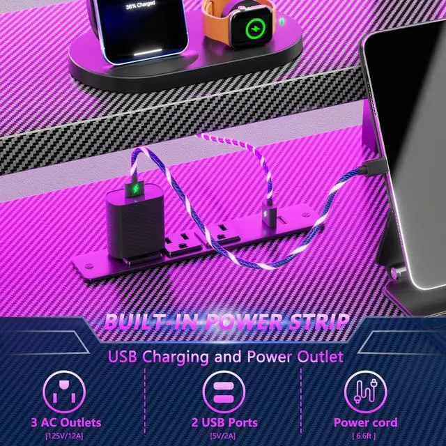 Gaming desk with power outlets: This gaming table comes with 3 AC sockets and 2 USB charging ports so you can charge devices such as mobile phones and laptops at the same time without interruption while you play