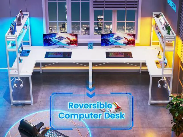Cool & Smart Led Light The computer desk comes with RGB LED light, remote control via APP, Over 60000 colors, and 29 flashing modes for you to choose from. Led lights with music sync function, built-in sensitivity adjustable mic, led light color will change with the rhythm of the sound and music. This small corner desk can help you play games for your home offices.