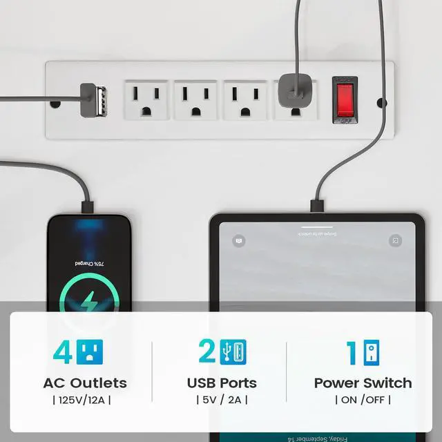 Charging PortOur charging station includes 4-Outlet & 2 USB Ports to provide power for up to 6 devices simultaneously. Also includes an on-off switch, thanks to the on-off switch, one-button power off to ensure safe electricity use, which strengthens security. Power outlet allows you to charge cell phones, tablets, notebook, etc.