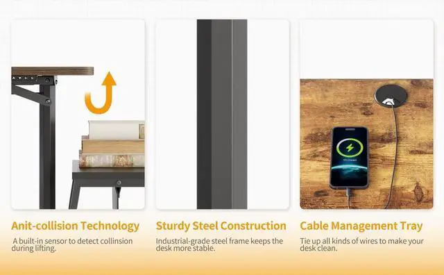 Electric Height Adjustable: The desk has 3 preset buttons to customize your desired heights from 27.16" to 46.06", the button supports height memory.