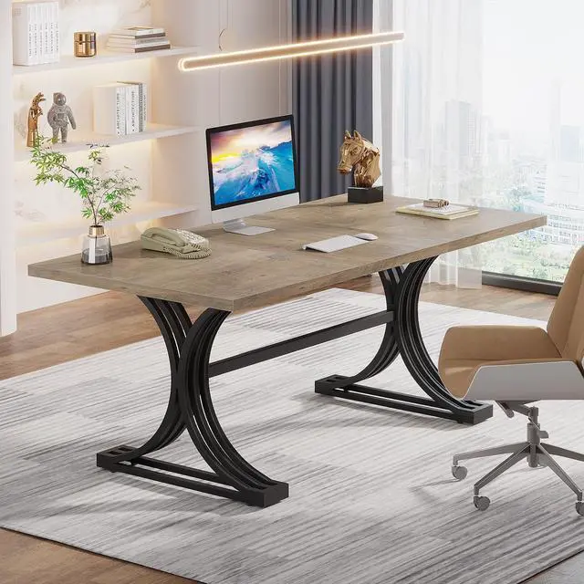 Tribesigns 63" Large Office Desk, Modern Executive Desks with Stylish Legs, Wood Computer Desk, Business Furniture Work Desk for Home Office (Grey and Black)