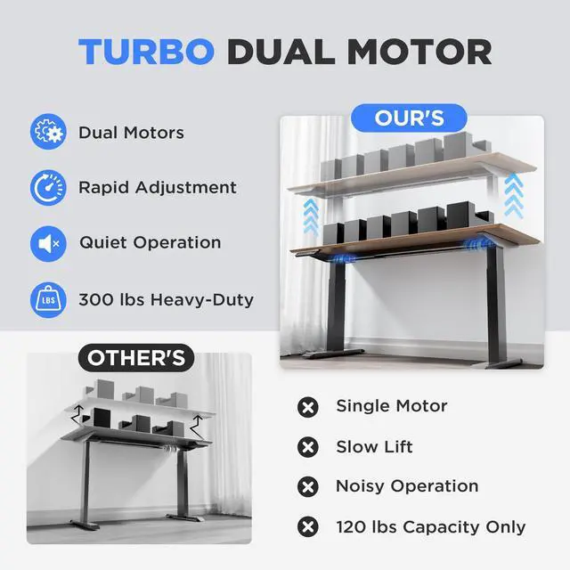 [DUAL MOTOR POWER, ULTRA-SMOOTH & QUIET] High-performance dual motors deliver fast, balanced lifting with whisper-quiet operation under 50dB.Exceptionally powerful for heavy setups, ultra-quiet for focused work
