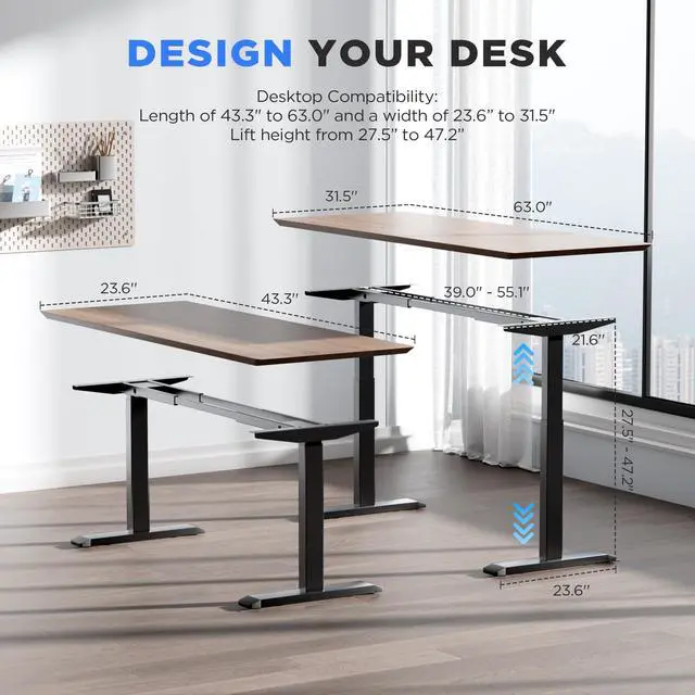 [FULLY ADJUSTABLE TO FIT YOUR DESK] Height adjusts from 27.547.2, width from 39.055.1, fitting desktops from 43.3"×23.6" to 63"×31.5".Perfect for home offices, gaming, and professional workstations.