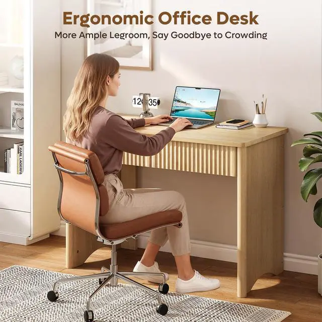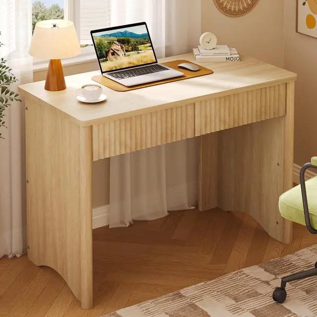 Trendy Fluted Texture & Modern Style: The Bestier 40 Inch fluted desk showcases a popular vertical fluted design with natural wood grain, elevating visual depth and a premium look for your workspace. This modern desk pairs perfectly with modern, Nordic and minimalist decor, serving as a stylish centerpiece for your home office, bedroom or compact area as a functional home office desk.