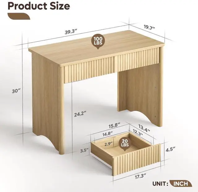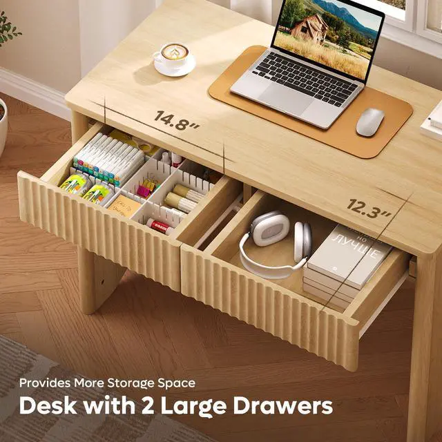Dual Large-Capacity Drawer Storage: This desk with drawers includes two spacious under-desk drawers with larger inner dimensions than most competitors, easily storing stationery, documents, chargers and daily essentials. Compatible with most drawer organizers, this small desk with drawers and computer desk with drawers keeps your workspace neat and organized.