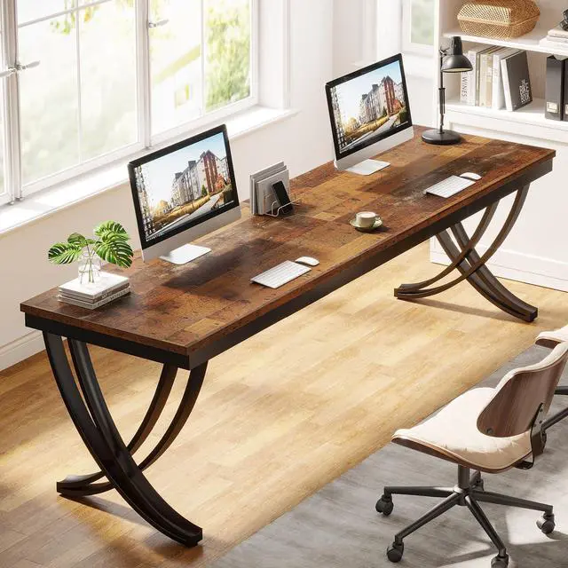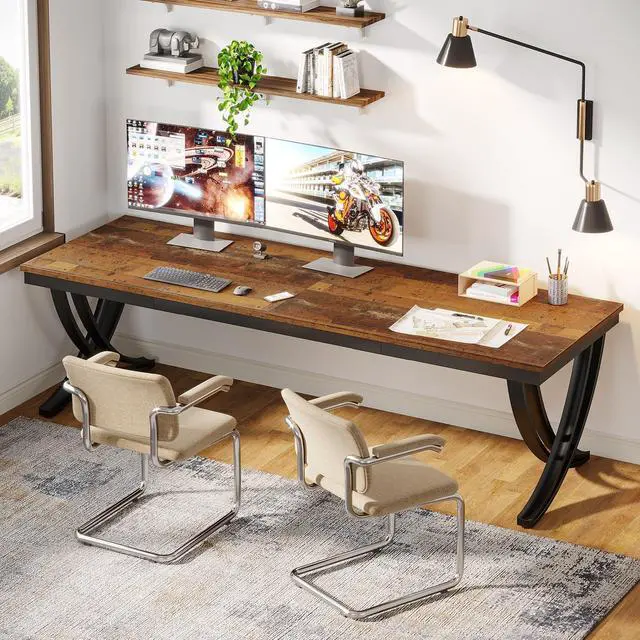 [Large Workspace]: Measuring 78.74"L x 27.56"W x 29.53"H, the computer desk provides ample space for two individuals to work side by side comfortably and without disturbance.It can accommodate two large monitors, keyboards,and other essential office equipment with ease, erasing any worry of space scarcity.