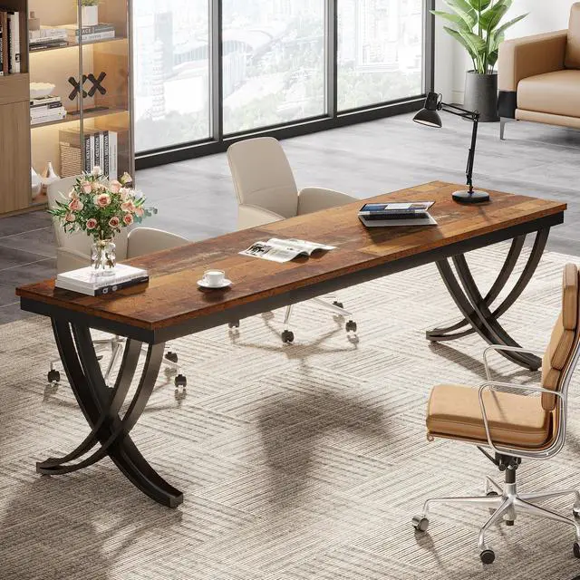 Tribesigns 2 Person Office Computer Desk, 78.7-Inch Extra Long Desk, Large Double Desk for Two People, Workstation Work Desk for Home Office with Stylish Legs (Brown)
