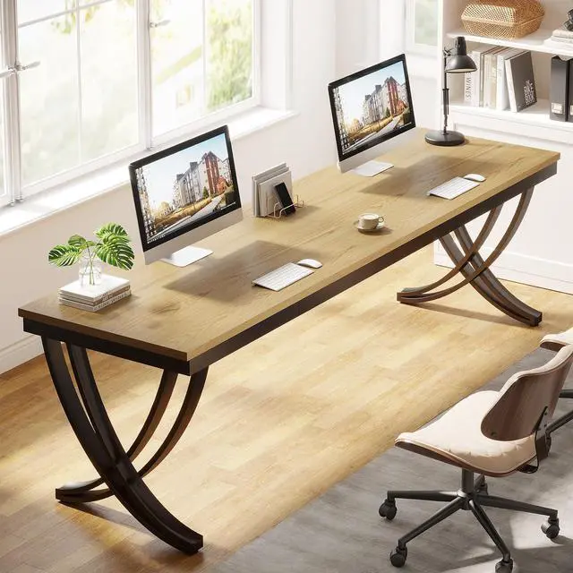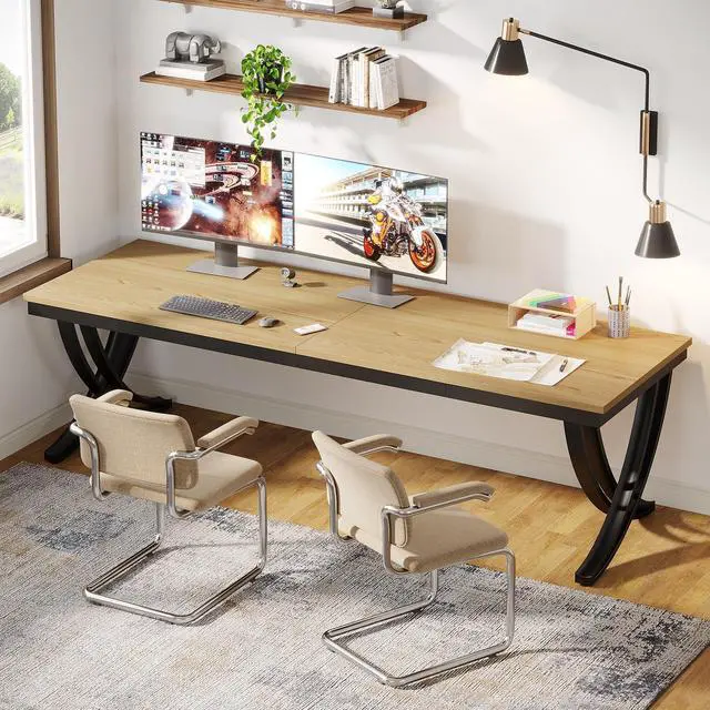 Tribesigns 2 Person Office Computer Desk, 78.7-Inch Extra Long Desk, Large Double Desk for Two People, Workstation Work Desk for Home Office with Stylish Legs (Natural)