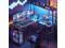 Gaming Desk L Shaped, Corner PC Computer Desk with Hutch,RGB LED Lights,Power Outlet,Storage Shelves, 47.2" Reversible Large Surface Table for Bedroom Home Office