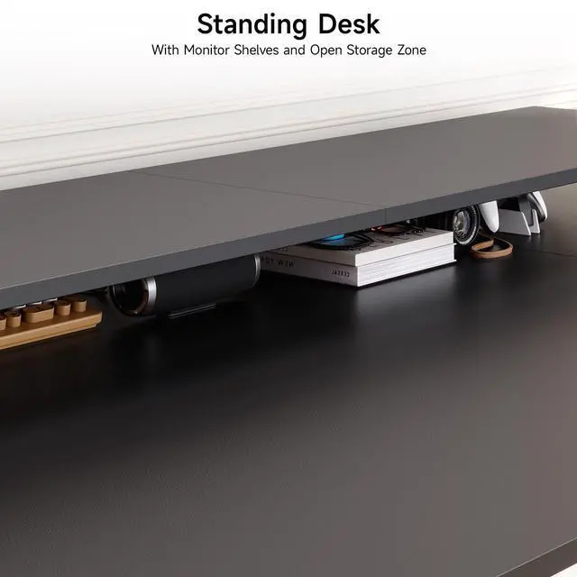 With 2 Adjustable Monitor Stands: The onbrill standing desk with 2 Adjustable 28 x 8 inch Monitor Stands provides the proper eye level for seated workers. The adjustable height is 28-46 inches. The 2 adjustable monitor stands can meet your requirements for placing multiple display devices.