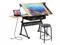JupiterForce Drafting Table Art Desk w/Power Outlet and Stool, Adjustable Tilting Drawing Table Artist Desk with 2 Storage Drawers, Art Craft Work Station for Home Office Working, Writing, Crafting