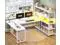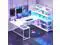 Computer Desk L shaped computer desk comes with a power outlet, LED lights, storage shelves, CPU Stand, a computer desk that can hold 2 monitors, storage shelves. The gaming desk could hold 2 desktop computers and 1 notebook computer. An ideal corner computer desk for small rooms to create excellent home office space.