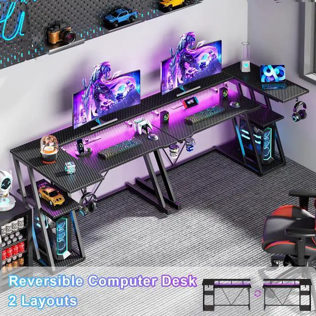 Reversible design: The L-shaped gaming desk can be flipped left or right to suit different room corners, and 2 can be combined into a U-shaped table for double play, making it a great gift option for gaming enthusiasts, children or friends