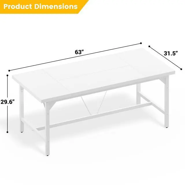Cyclysio 63" Large Computer Desk, Long Office Table with Heavy Duty Metal Frame, Modern Study Writing Gaming Desk for 2 Person, 1.4" Thick Wood Desktop for Home Office (White, 63 Inch)