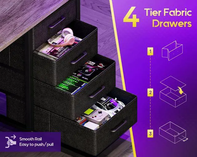 4 Spacious Fabric DrawersKeep your workspace tidy with 4 deep fabric drawers. This desk with smooth-gliding drawers offers excellent dust-free storage for files, supplies, and personal items, drastically reducing desktop clutter, perfect for focused work or study sessions at home