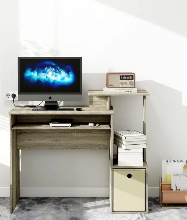 Integrated Storage & Keyboard Drawer: Features a slide-out keyboard drawer, non-woven supply bin, and side shelves, functioning as a work table with drawers, computer desk with storage, and desk with shelves to keep your workspace organized