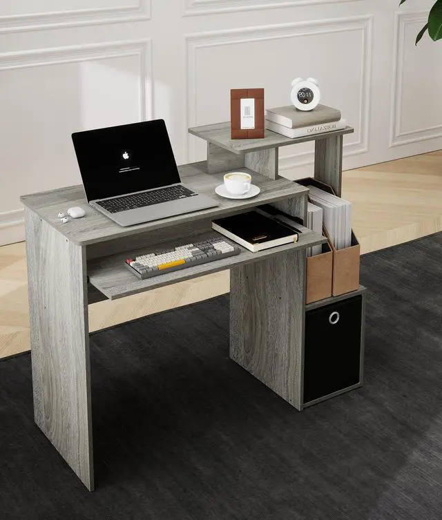 • Integrated Storage & Keyboard Drawer: Features a slide-out keyboard drawer, non-woven supply bin, and side shelves, functioning as a work table with drawers, computer desk with storage, and desk with shelves to keep your workspace organized