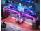 55 Inch Gaming Desk with Bluetooth LED Lights & Power Outlets,Computer Desk with Fabric Drawers & Hooks,Reversible Gamer Table with Monitor Stand for Game Room,Home Office,Carbon Fiber Black