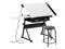 HomGarden Height Adjustable Drafting Desk Drawing Table Art Craft Work Station w/Stool, Power Outlet and Storage Drawers for Home Office Study Room, White