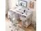 White Computer Desk with Drawers, 42 Inch Home Office Desk Study Writing Table, Gaming Desk with USB Power Outlets, Office Desk with Fabric Drawer, Work Table with Shelf for Bedroom, White