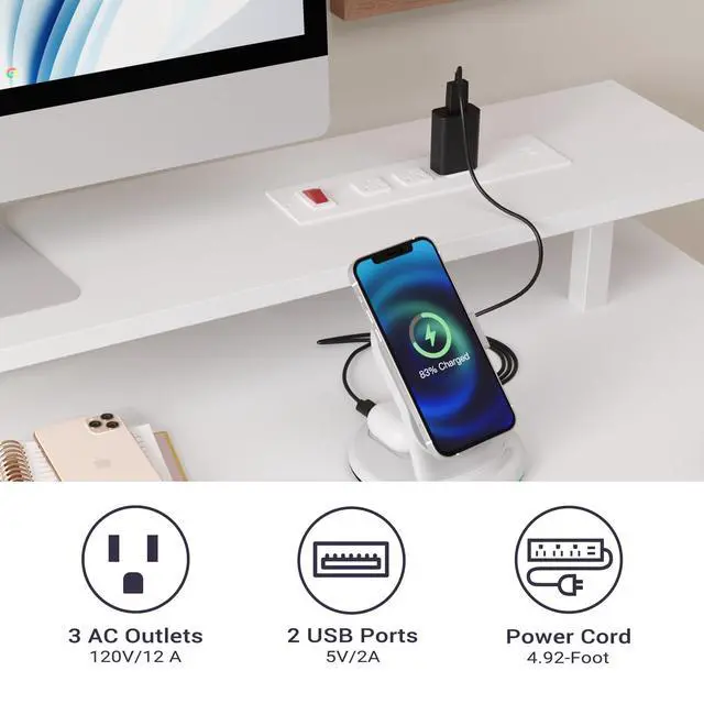 Computer Desk with Charging Station - The computer desk includes a built-in 3 power outlets and 2 USB charging ports for your phone, headset, tablet, power bank, gaming gear with fast charging, which provides a great convenience to your life when you are working or playing games