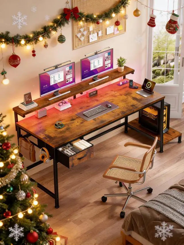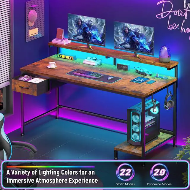 Gaming Desk with Colorful LED Lights: This gaming desk is fitted with an LED light strip, featuring 20 static colors, 22 dynamic modes and a memory control function. Adjusting to proper lighting can reduce eye fatigue, improve concentration, and create a