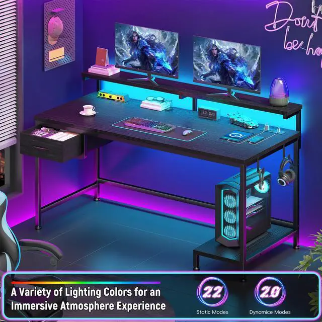 Gaming Desk with Colorful LED Lights: This gaming desk is fitted with an LED light strip, featuring 20 static colors, 22 dynamic modes and a memory control function. Adjusting to proper lighting can reduce eye fatigue, improve concentration, and creat