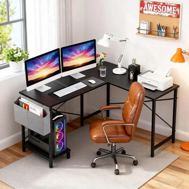 Space-Saving L-Shaped Design: The L-shaped cpu desk structure fits neatly into corners, making the most of available space while also providing a big work area for gaming, writing, studying, or working from home.The designed structure optimizes room layout by offering a useful and tidy workplace without taking up extra floor space.