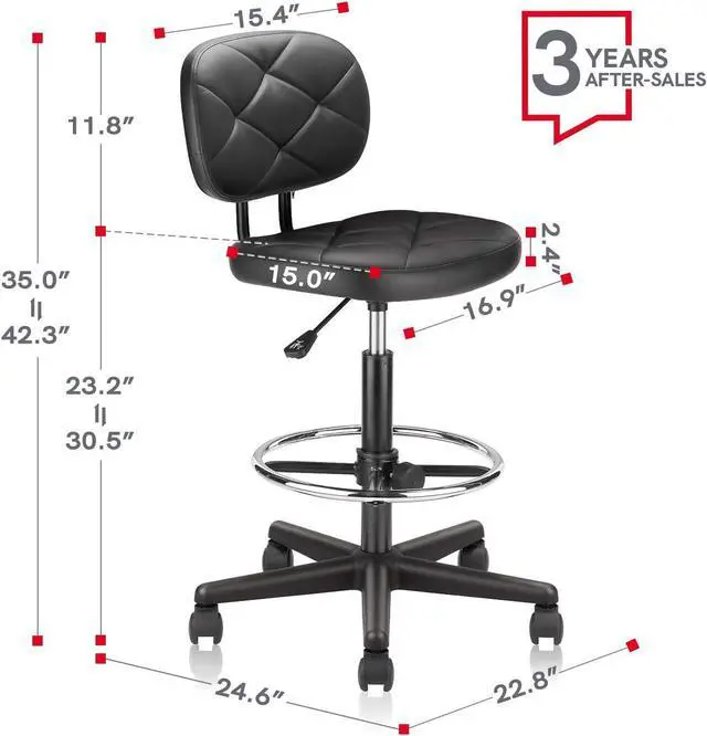 Sturdy & Durable: This excellent drafting stool chair is made with premium quality PU matte leather, sturdy star-shaped base, electroplating footring and floor protective caster wheels with max. weight capacity 242lbs for durable use.
