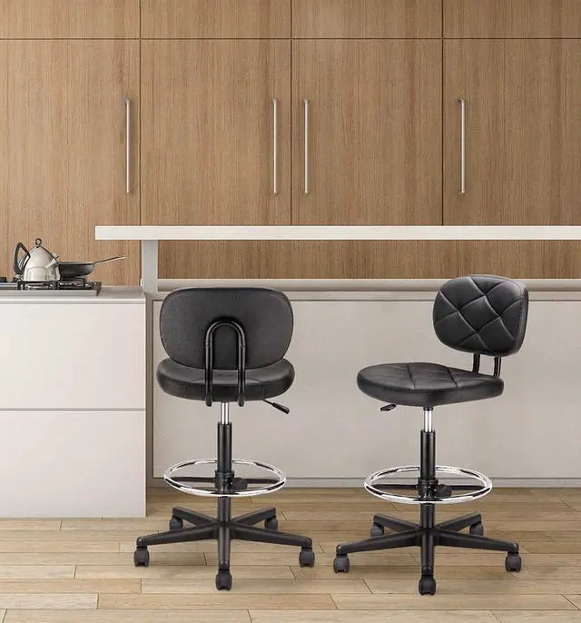Contemporary Design: Our drafting stool comes with a modern design, classical diamond stitching and noble black PU matte leather, which makes it super easy to match various occasions such as in an art room, lab room, study room, bar, office or home ect.