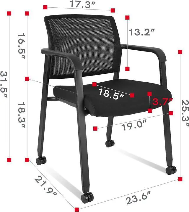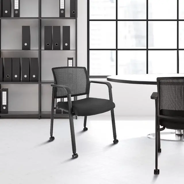 CLATINA Black Waiting Room Chair with Wheels Mesh Back Stacking Arm Chairs with Upholstered Fabric Seat and Ergonomic Lumber Support for Office School Church Guest Reception