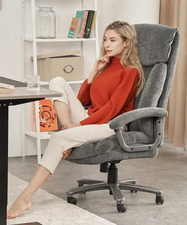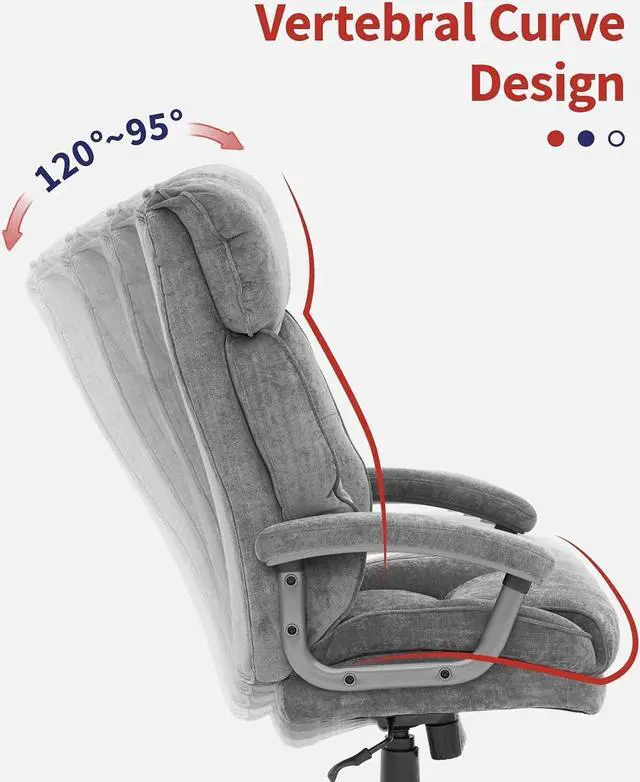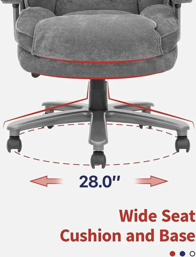 COMFORTABLE AND ERGONOMIC: This large and tall chair is covered with a fabric interior, soft and durable, and comes with ultra wide cushioned seats, suitable for those who need space but feel cramped on most chairs. This office chair features a large amount of thick plush padding to provide greater support. This chair adopts ergonomic elements in its design, which can minimize your fatigue in daily work and home use. It is very suitable for working in front of a computer or from home for a long time and will make you a good companion for daily work and life. This chair meets or exceeds all the requirements of a